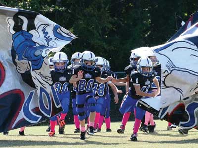 Two banner halves attached with hook and loop fasteners that break away when your team runs onto the field. Completely re-usable with simple care. Made from 13oz heavy-duty outdoor vinyl with weatherproof inks, heat-welded hems, and 4" standard pole pockets.